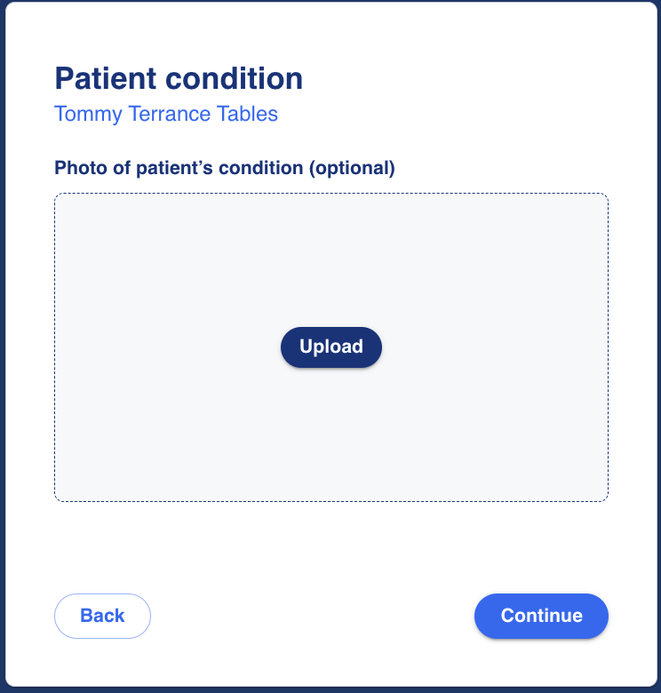 The user is prompted to add an optional photo of their condition which will be added to the visit record. Only one photo can be uploaded.