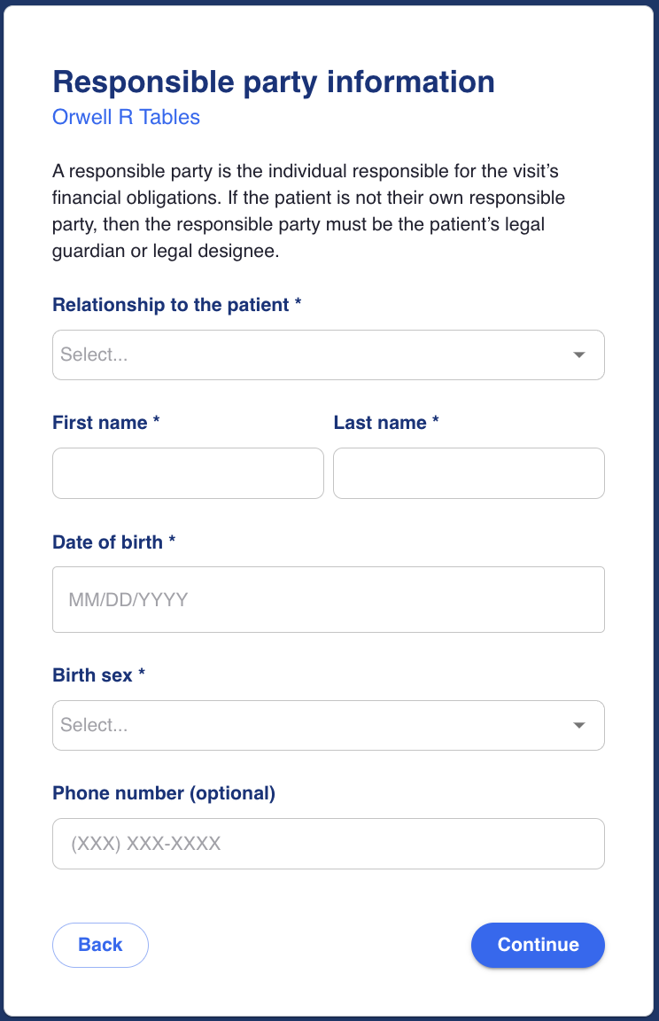Information of the person responsible for payment in case the patient is not legally liable for financial obligations.