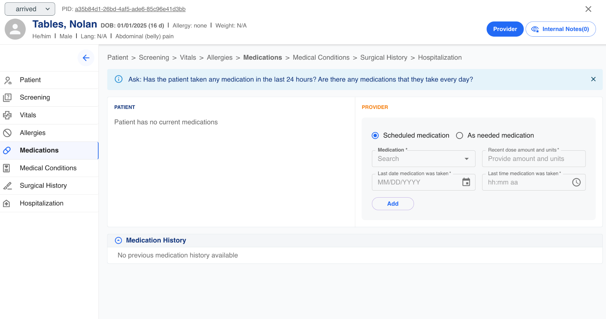 Once this information has been entered, the medication can be added to the patient intake record.