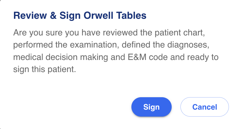 Once the provider has completed all of the steps listed under 'Missing' in the Progress Notes, they will be able to 'Review and Sign' (button on the bottom right side of the Progress Notes screen). Once signed, the visit moves to Completed status, and the Completed tracking board.