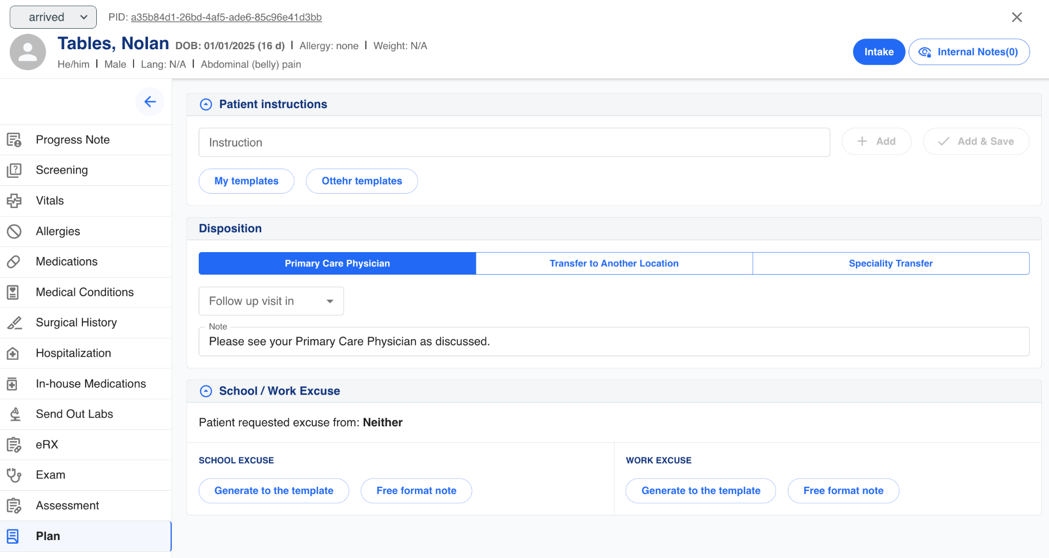 Here the provider can capture instructions for the patient, disposition, and provide school or work excuse notes.