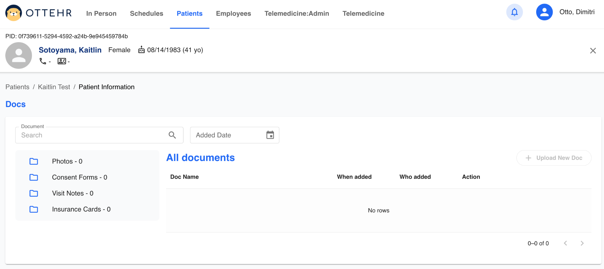 Patient documents will be organized in folders on the patient record. Documents will either be uploaded manually or automatically sent to the appropriate folder from the registration and visit level. Staff are also able to download and print uploaded documents.